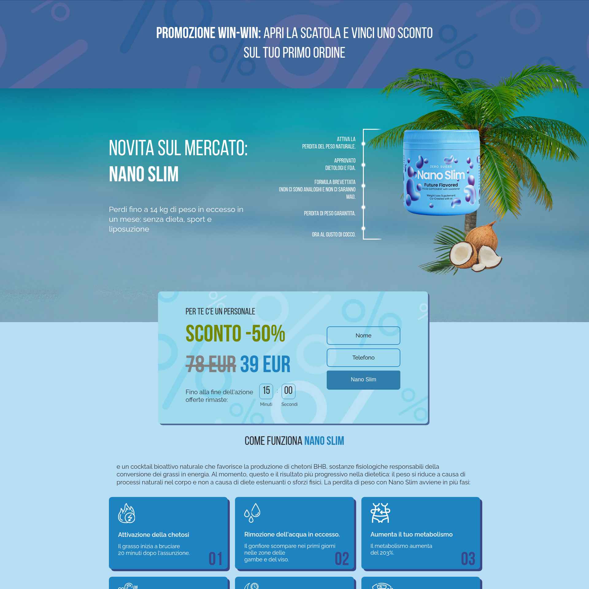Energia ottenuta in questo modo e molto più forte. Pertanto, sentirai immediatamente un'ondata di vivacita e la qualita del tuo sonno verra migliorato notevolmente. Il complesso Nano Slim e certificato come integratore vitaminico naturale, quindi e utile non solo per la perdita di peso, ma anche per mantenere una sana immunita.